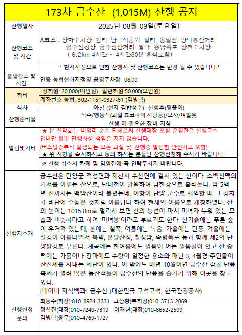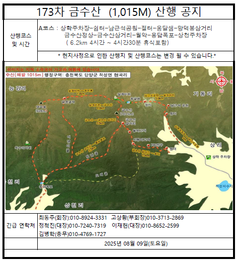 제천 금수산 ㆍ173차 산행 작성자정척진|작성시간25.08.08|조회수41 목록 댓글 0 글자크기 작게가 글자크기 크게가 말복더위 날리는 계곡 입수에 소주한잔.ᆢ가을이 머지않아 다가 오리니9일ㆍ강수예보ᆢ우의 준비 하실것 다음검색 현재 게시글 추가 기능 열기 북마크 공유하기 신고 센터로 신고 댓글 댓글 0 댓글쓰기 답글쓰기 댓글 리스트