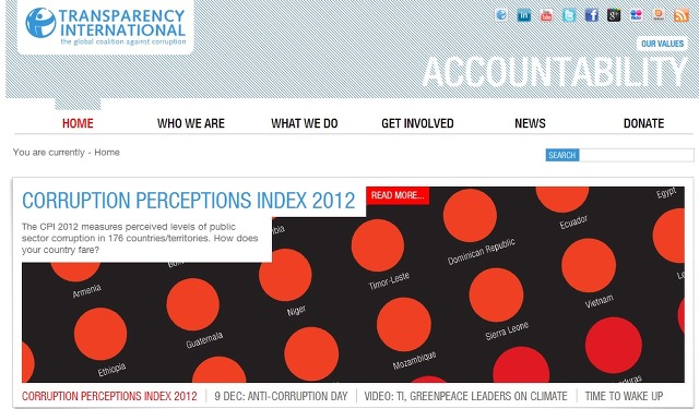 국제투명성기구 (Transparency International)가 2012년 12월 5일에 발표한 세계 부패인식지수 (CPI)이다.