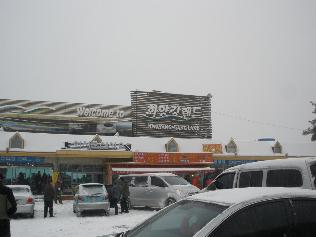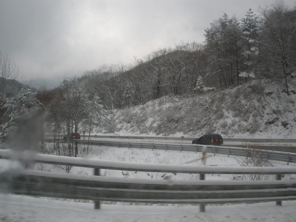 서울출발 두시간만에 화양강 휴게소에 도착하니 눈이 더 많이 온다[1/2 10:15]
