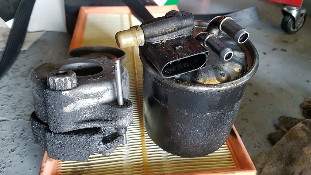 벨트 끊어짐과 텐션 베어링,연로 필터 누유와 리져브통 레벨 센서 불량.