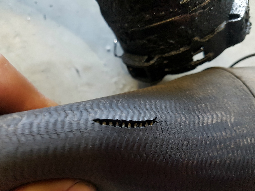 육안상으로 안 보이다 작업 중 발견 된 인터클러 호스