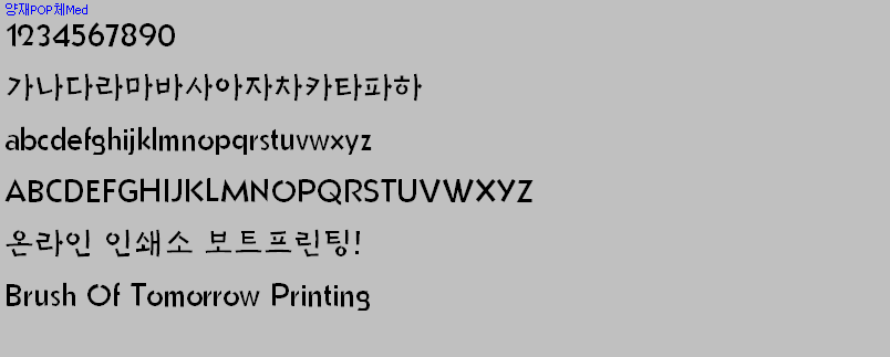 보트프린팅의 서체 이미지 자료 - 양재POP체Med 작성자인조인간|작성시간12.04.29|조회수217 목록 댓글 0 글자크기 작게가 글자크기 크게가 보트프린팅에서는 서체 이미지 정보만 제공합니다. 저작권의 문제가 발생할 수 있는 서체 원본 자료의 공유는 절대 하지 않습니다. 서체 자료 문의는 받지 않습니다. 다음검색 현재 게시글 추가 기능 열기 북마크 공유하기 신고 센터로 신고 댓글 댓글 0 댓글쓰기 답글쓰기 댓글 리스트