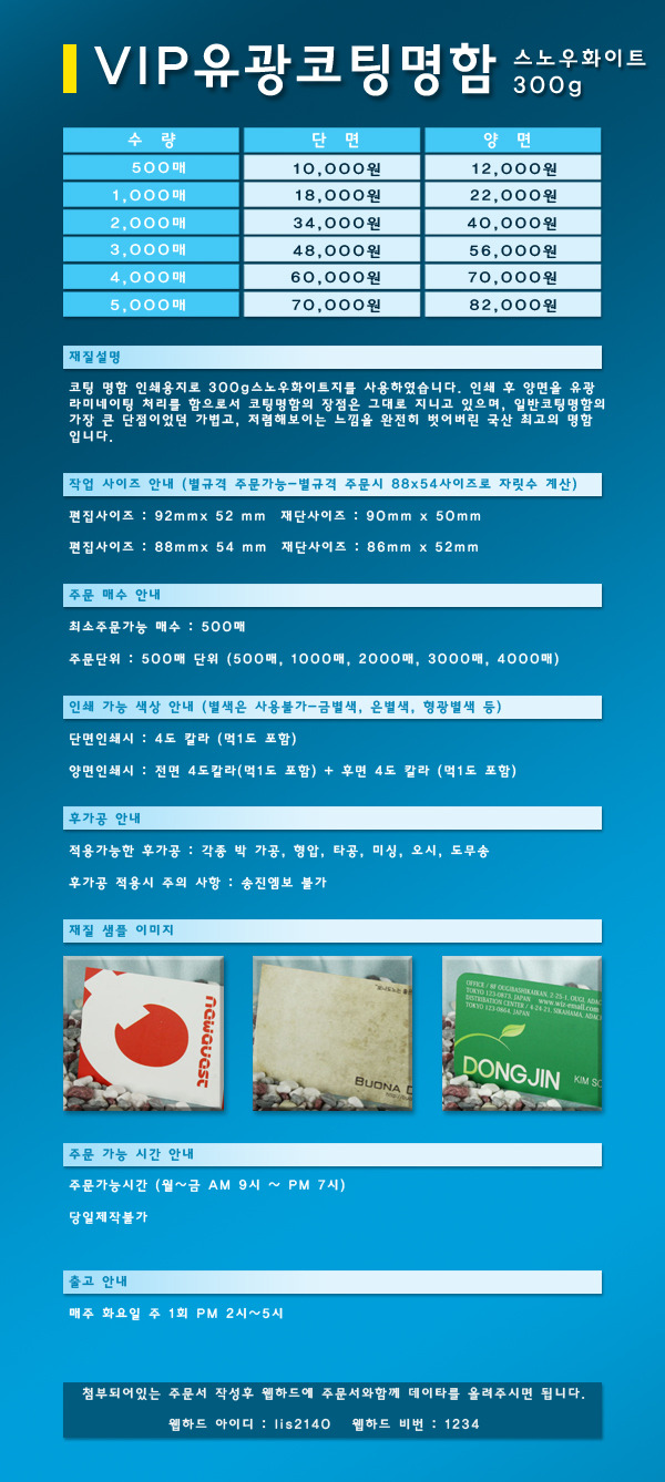 * 본 단가표는 편집 완료된 파일로 주문시 제작가격이며, 디자인 비용 및 배송비는 포함되지 않은 가격입니다.