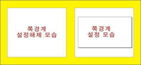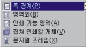 쪽경계보기 : 현재 설정되어있는 문서의 크기에 맞는 영역을 표시할 것인가의 여부를 설정하는 기능입니다.
