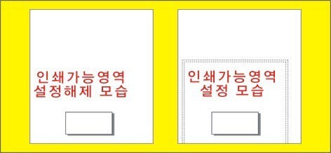 인쇄가능영역모습 : 현재 설정되어있는 프린터의 인쇄 영역을 보여주는 기능입니다.