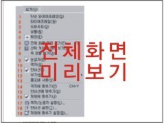 전체화면 미리보기 명령을 하면 화면내 모든 아이콘 및 명령 부분이 사라지고