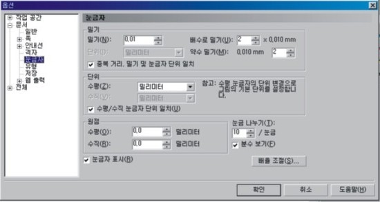 격자 및 눈금자의 설정부분에 대한 수치를 조절해주는 부분입니다.