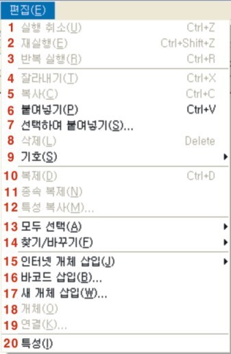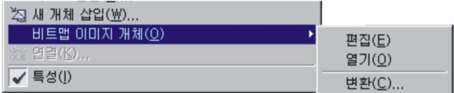 작업중인 문서에 OLE파일이 있을 경우에 활성화되며, OLE개체를 수정 편집하는 기능입니다.