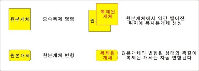 복제명령과 복사의 방법은 같습니다. 하지만 종속의 성질을 갖는다는점만 다릅니다.