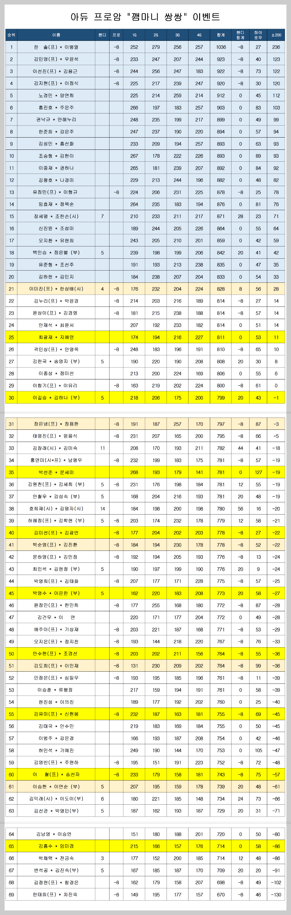 * 21위 - 이미진(프) * 한상배 , 31위 : 장은녕(프) * 정용현