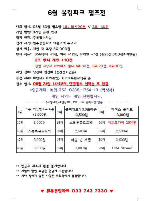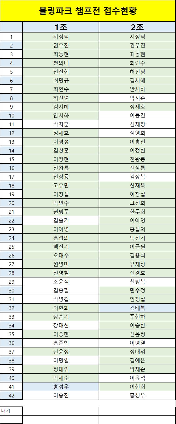 6월 볼링파크 챔프전 공지 및 접수현황 (06.29 20:00) 작성자허진녕|작성시간25.06.23|조회수1,234 목록 댓글 35 글자크기 작게가 글자크기 크게가 다음검색 현재 게시글 추가 기능 열기 북마크 공유하기 신고 센터로 신고 댓글 댓글 35 댓글쓰기 답글쓰기 댓글 리스트 작성자민성 | 작성시간 25.06.25 강민성 2조 대기요 작성자이현희 | 작성시간 25.06.27 이현희 전조 대기합니다 해당 댓글은 작성자와 운영진만 볼 수 있습니다. 작성자동욱아부지 | 작성시간 25.06.29 심재문 개인사정으로 취소합니다 작성자최도경 | 작성시간 25.06.30 최도경 일정 변경으로 1,2조 대기합니다.번거롭게 해드려 죄송합니다! 댓글 전체보기