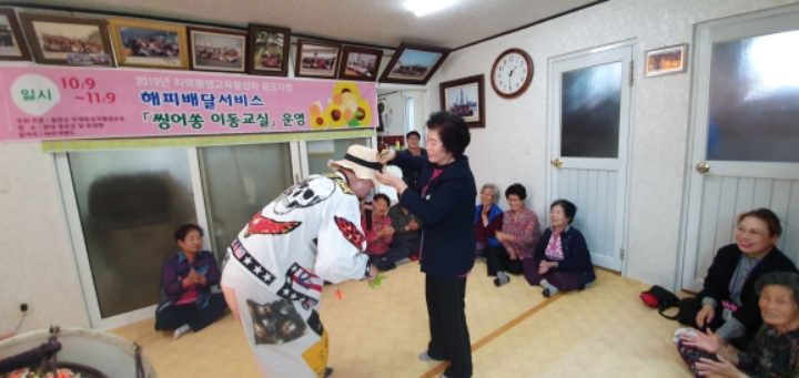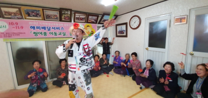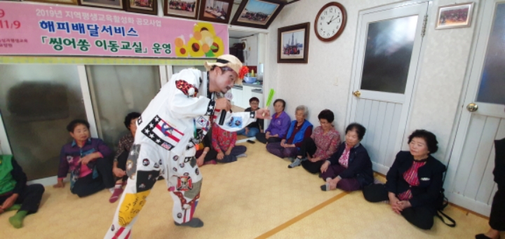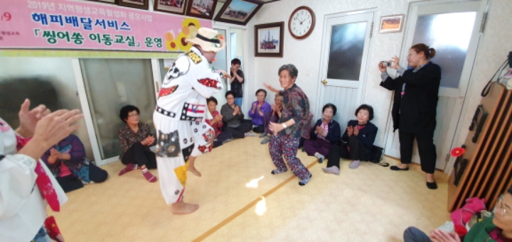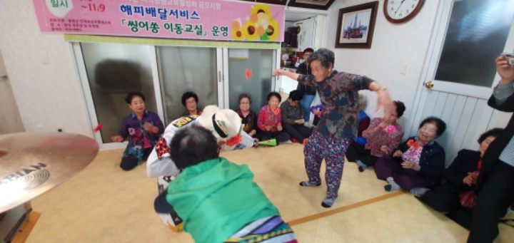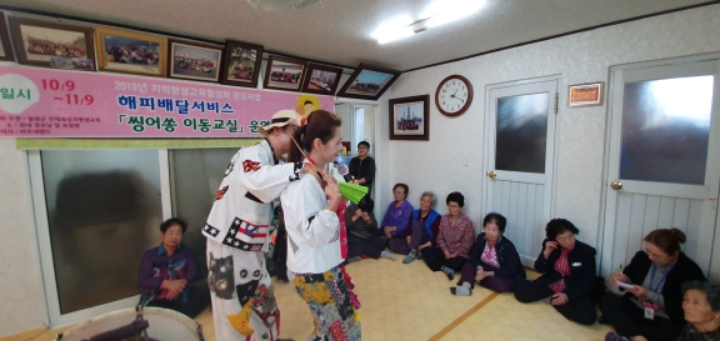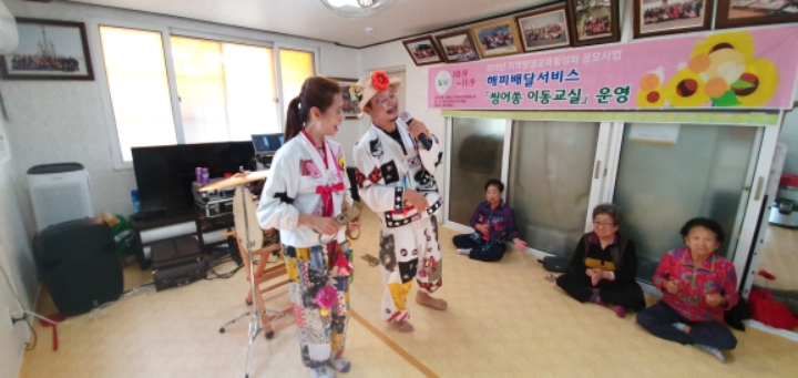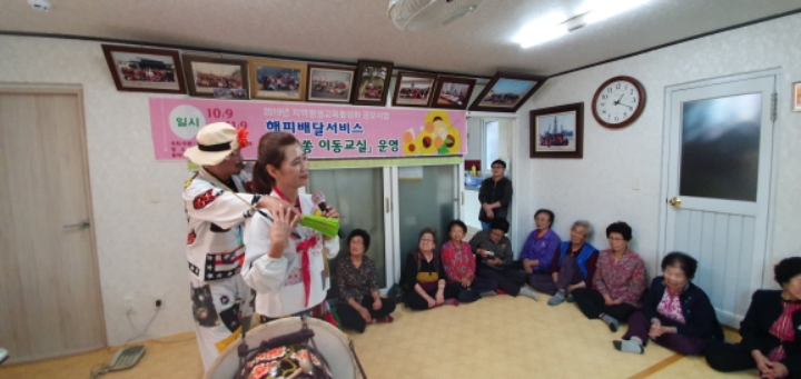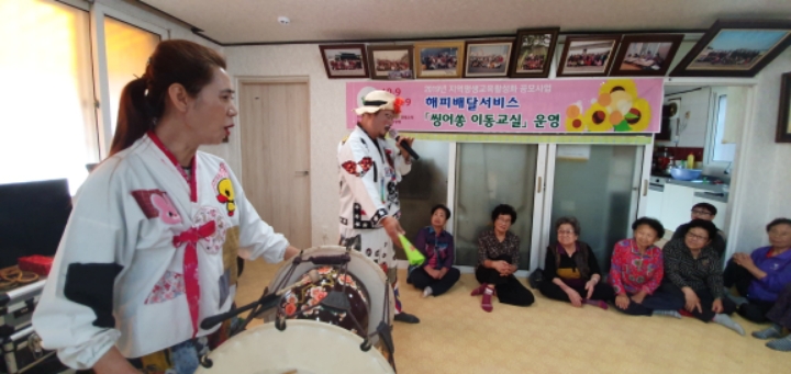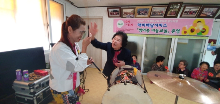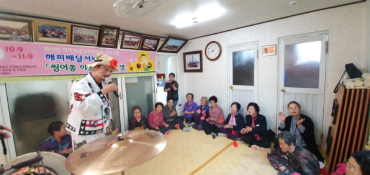 바우네밴드 철원읍 화지1리 마을회관에서 어르신들을 모시고 "해피배달서비스 싱어송이동교실" 공연을 하였습니다