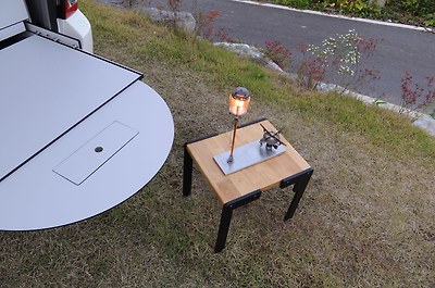 보조테이블을 펼치면 2인이 사용가능한 실내 테이블이 완성됩니다.