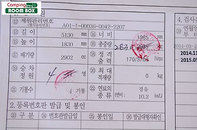 승차정원 4명 취침인원2명으로 표기되는 구조장치 변경작업