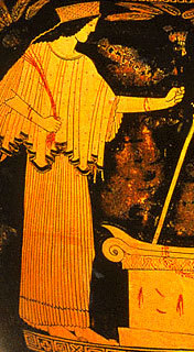 여신의 기분을 풀어 주려고 하녀 이암베(Iambe)가 음담패설에 가까운 짙은 농담을 해대자