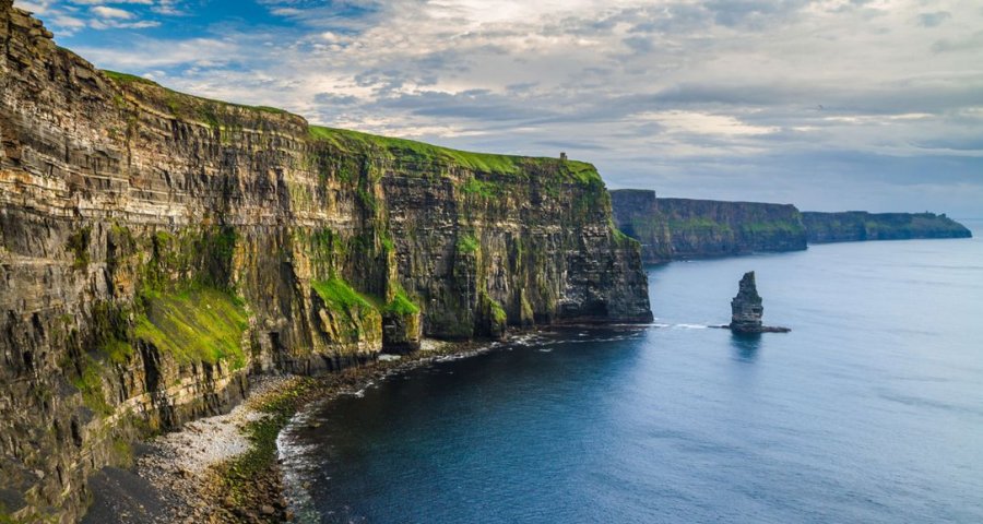 아일랜드에 있는 클래어 주의 해안에는 200미터 높이의 거대한 절벽이 8킬로미터나 늘어서서 대서양의 거센 파도와 싸우고 있으니 그곳이 바로 모허 절벽이다. 이 절벽이 도저히 접근할 수 없을 정도로 험한 것은 아니지만 바다에서 곧장 수직으로 솟아 있는 모습을 보면 감탄이 끊이지 않는다. 석회암 기단 부분은 약 3억 년 전에 따뜻하고 얕은 바다에서 형성되었다. 그리고 이 위에 사암층이 연속으로 쌓인 것이다. 퇴적물은 대규모 지각작용으로 형태를 갖추었고 바람과 비와 짠 바닷물이 암석을 깎아내렸다. 결국 절벽의 일부분이 바다로 떨어져 내렸다.