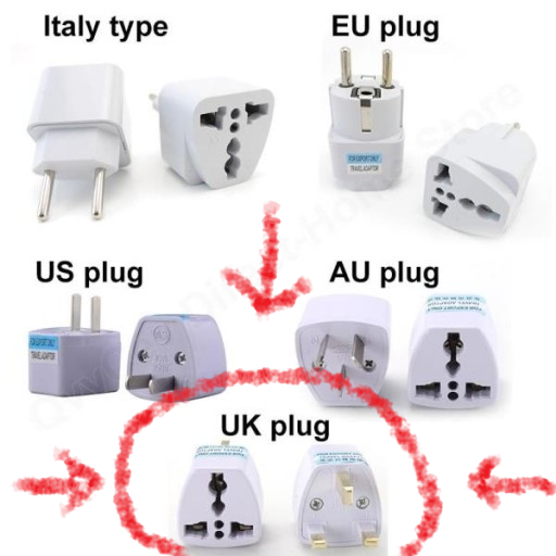 2) 아래 그림을 참조하여, 충전을 위한 어댑터는 영국에서 사용할 수 있는 제품인지 확인하고 가져오세요. 어떤 제품을 구입하거나 가져와야 할지 정확히 모르실 경우, 필요한 수량을 알려주시면 미리 구매해 드리겠습니다.