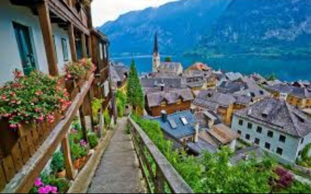 붉은 지붕들이 이어진 마을