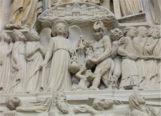 최후의 심판 때에 부활한 인간의 영혼을 저울로 달아 천국행과 지옥행을