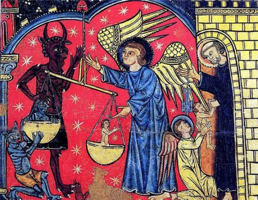 영혼의 무게를 달아 악한 영혼은 지옥의 유황불 속으로 떨어지지만