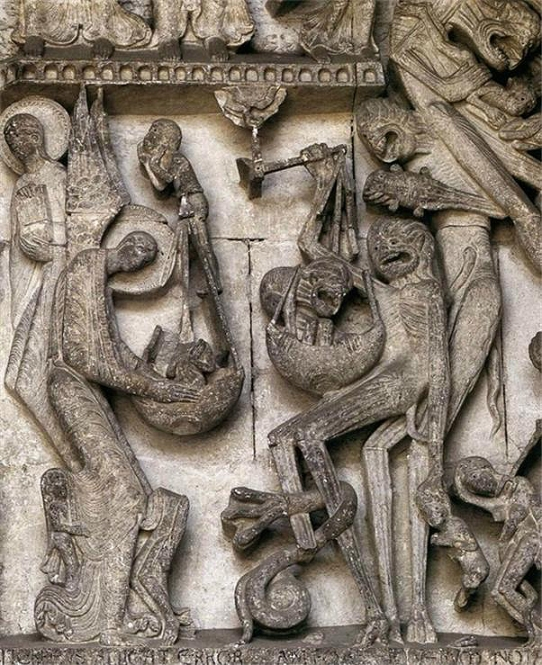 아를(Arles)에 있는 생 트로핌(St.Trophime) 교회 벽의 부조에는 미카엘 대천사가 저울을 들고 있다.