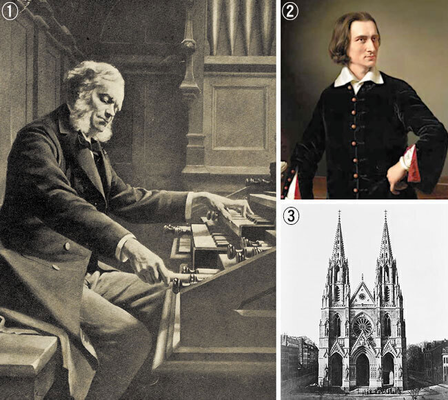 ▲ ①오르간을 연주하는 세자르 프랑크의 모습. 그가 큰 관심을 보인 분야는 오르간 연주와 작곡이었어요. ②세계적인 음악가 프란츠 리스트예요. 그는 프랑크의 오르간곡을 두고 "최고의 오르간 작품"이라며 극찬했어요. ③프랑크가 오르간 연주자로 있었던 생 클로틸드 성당의 모습. /위키피디아 올해, 탄생 200주년을 맞은 벨기에의 작곡가 '세자르 프랑크(1822~1890)' 예술가의 삶은 그들이 남긴 위대한 유산만큼이나 다양했습니다. 그래서 저마다 다른 모습으로 기록돼 있죠. 올해로 탄생 200주년을 맞은 벨기에의 작곡가 세자르 프랑크(César Franck, 1822~1890)는 대중의 무관심에도 아랑곳하지 않고 자신의 길을 묵묵하게 걸어간 예술가 중 한 사람입니다. 자신의 음악 세계를 꽃피울 때까지 오랜 세월을 인내하며 기다린 끝에 멋진 결실을 보았죠. 이 때문에 대표적인 '대기만성(大器晩成)' 음악가로 꼽힌답니다. "최고의 오르간 작품" 평가받아 세자르 프랑크는 독일과 접경해 있는 지역인 벨기에 리에주에서 태어났습니다. 아버지는 아들을 어려서부터 뛰어난 음악가로 키우려고 했죠. 프랑크는 리에주 음악원을 거쳐 1837년부터 파리 음악원에서 공부했습니다. 이곳에서 피아노와 작곡, 오르간을 배운 그는 모두 우수한 성적을 거뒀지만 아버지의 지나친 관심 때문에 학업을 중단하고 잠시 고향으로 돌아가게 되죠. 1843년 다시 파리로 돌아온 프랑크는 실내 악곡과 종교음악 등을 작곡하면서 점차 음악계에서 인정받는 작곡가로 자리를 잡아 갔습니다. 그가 무엇보다 큰 관심을 보였던 분야는 오르간 연주와 작곡이었죠. 프랑크는 노트르담 드 로레트 성당에서 오르간을 연주하다가 1858년 1월 생 클로틸드 성당의 오르가니스트로 취임합니다. 19세기 세계적인 음악가로 손꼽히는 프란츠 리스트(1811~1886)는 그가 1860년대 작곡한 오르간 곡을 두고 "최고의 오르간 작품"이라며 극찬했다고 전해져요. 그는 음악가들 사이에서 훌륭한 스승으로도 유명했습니다. 꾸준히 연주가와 작곡가로 명성을 높여가던 프랑크는 1872년부터 파리 음악원의 교수로 부임해 선생님으로 많은 활동을 하게 되는데요. 19세기 후반 프랑스를 대표하는 작곡가인 앙리 뒤파르크, 뱅상 댕디, 에르네스트 쇼송, 가브리엘 피에르네 등이 그의 문하에서 성장한 제자들이었어요. 이들은 이른바 '프랑키스트'(프랑크 악파)라 불리며 스승의 음악 세계를 유럽 전역에 알렸습니다. 예순 가까운 나이에 결실 봐 이처럼 프랑크는 젊은 시절부터 음악가들 사이에서 많은 주목을 받았지만, 정작 그의 작품은 청중에게 큰 인기를 끌지 못했습니다. 그의 작곡 기법 때문이었는데요. 프랑크는 특정한 멜로디나 몇 개의 음으로 만들어진 모티브(음악 형식을 구성하는 단위)가 전곡에 걸쳐 등장하는 '순환동기' 기법을 썼습니다. 이 기법은 곡 중간에 등장하는 대목의 분위기나 작곡가가 표현하고자 하는 메시지에 따라 성격이 자유롭게 변화하지만, 같은 모티브를 기반으로 하기 때문에 작품 전체에 통일성을 부여하죠. 그런데 화려한 오페라나 오페레타 등을 선호하던 당시 프랑스 사람들은 프랑크의 음악이 지나치게 어렵고 심오하다고 여겼어요. 변화를 준 모티브가 반복적으로 등장하다 보니 구성이 지나치게 논리적이고 복잡하다고 생각했던 거예요. 이와 비슷한 기법은 독일의 작곡가 리하르트 바그너(1813~1883)가 오페라에서 주로 사용했는데요. 대중은 프랑크가 독일 작곡가 영향을 받은 작품을 쓰는 것도 좋아하지 않았죠. 작품의 인기는 별로 없었지만, 프랑크는 대중적인 유행과 타협하지 않았어요. 그는 지속적으로 자신만의 기법을 발전시켜 나갔고, 결국 예순에 가까운 나이가 되어 결실을 보게 됩니다. 그가 쓴 작품이 주목받기 시작한 거예요. 오늘날 알려진 프랑크의 작품들은 대부분 만년에 발표된 작품이에요. '피아노 5중주 F단조'(1879), '교향곡 D단조'(1888), '현악 4중주 D장조'(1889) 등이 대표작이죠. 장르마다 단 한 곡씩만을 남겼다는 것도 특이하답니다. '생명의 양식'이 가장 유명 프랑크의 작품 가운데 가장 유명한 곡은 '생명의 양식'(Panis Angelicus)이에요. '천사의 빵'으로도 번역되는 이 노래는 중세 유럽의 스콜라 철학을 대표하는 이탈리아 신학자 토마스 아퀴나스가 쓴 가사로 만든 것인데, 가톨릭 미사의 영성체 의식에서 불리는 노래죠. 프랑크는 1872년 남성의 가장 높은 음역대인 테너 목소리를 위한 노래를 만들었는데요. 오르간·하프시코드·첼로·더블베이스가 함께 연주하는 곡이었어요. 그는 이때 만든 노래를 과거 만들어 둔 미사곡에 추가했는데, 이 곡이 생명의 양식입니다. '생명의 양식을 하늘의 만나를 / 마음이 빈 자에게 내려주소서'라는 가사로 시작하는 이 작품은 아름다운 멜로디와 경건한 분위기로 많은 사람에게 사랑받고 널리 불리는 명곡이 되었습니다. 동서고금의 바이올린 소나타 중 가장 유명한 '바이올린 소나타 A장조'(1886)도 빼놓을 수 없는 프랑크의 대표작입니다. 이 곡은 프랑크와 같은 벨기에 사람이었던 당대 최고의 바이올리니스트 외젠 이자이(1858~1931)의 결혼 선물로 만들어진 작품이었어요. 프랑크는 그해 여름 네 악장으