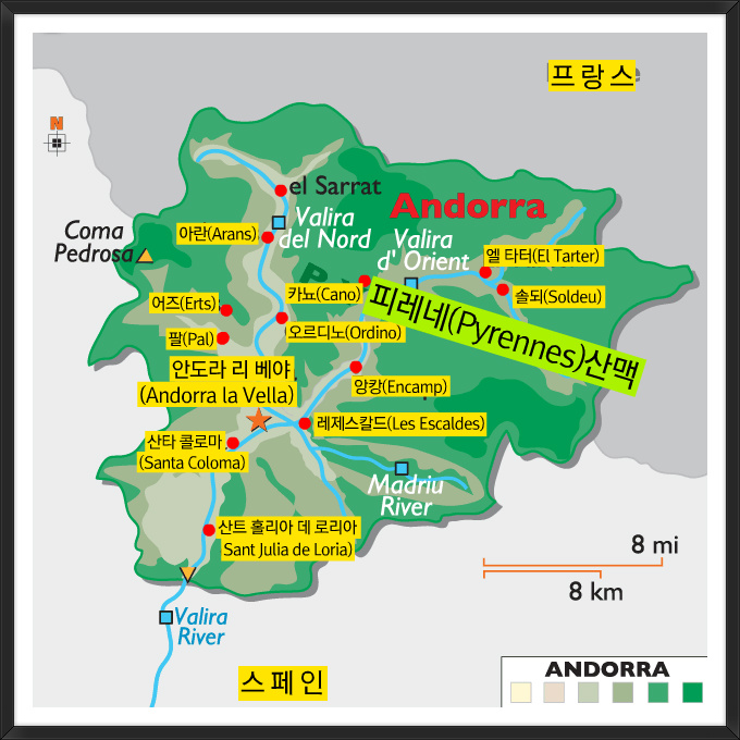 안도라(Andorra)-스페인과 프랑스의 국경 근처 작은 나라.