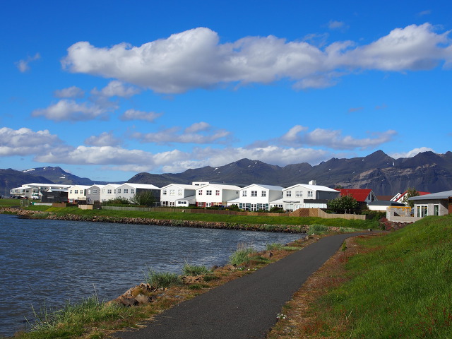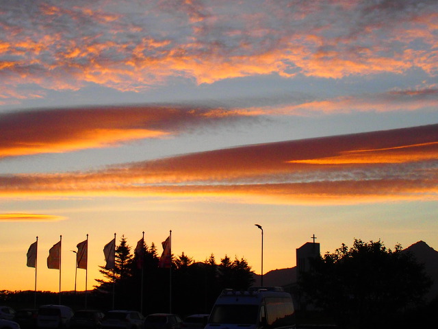 빙하와 노을이 호픈의 해변마을에 내려앉았다.