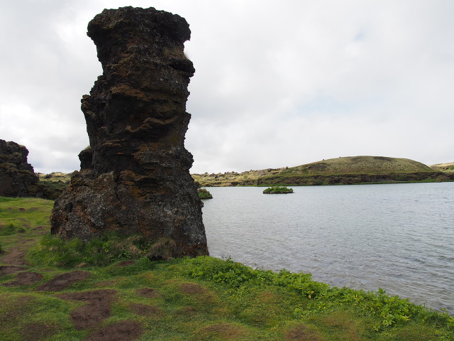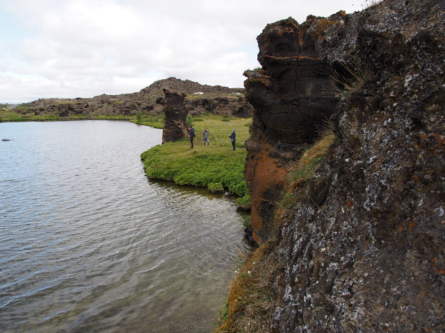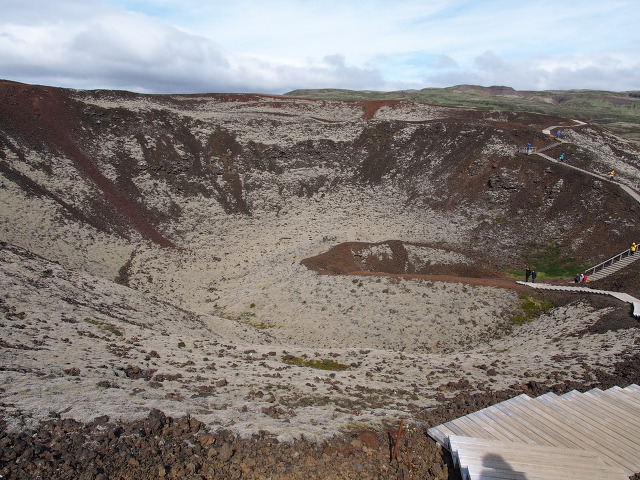 분화구에 물과 풀 대신 이끼가 자라고 있다.