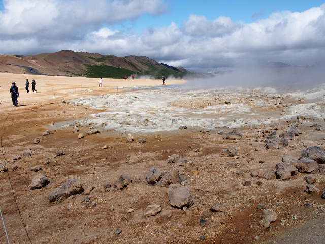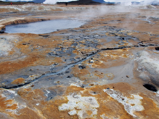 지열 수증기가 연기처럼 뿜어져 나오고 곳곳에 옥색 호수가