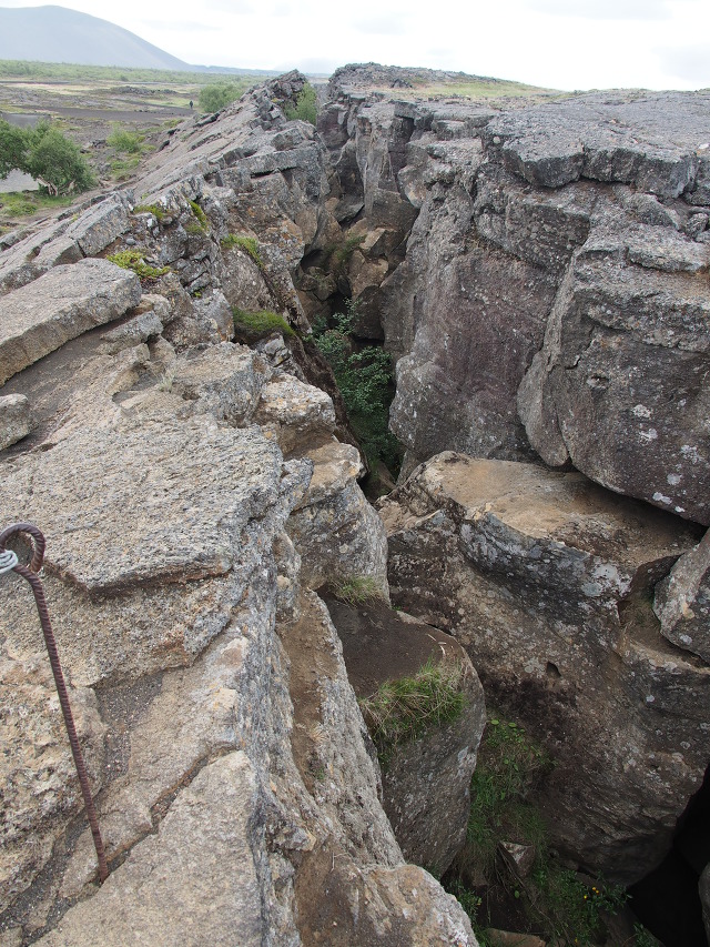 바위언덕이 시루떡처럼 갈라져 있다.