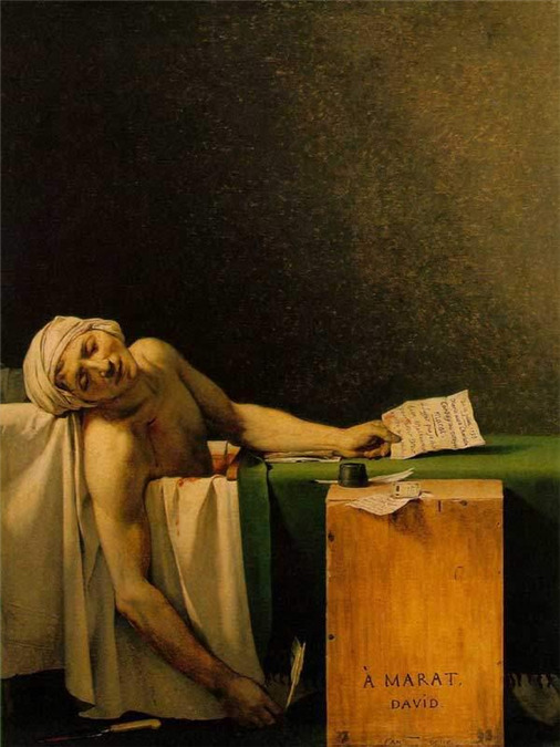 프랑스 혁명을 주도한 장 폴 마라의 죽음을, 혁명 정부에 깊이 관여하고 있던 다비드가 추모의 의미로 그린 것이다. 편안한 잠에 빠진 것 같은 죽은 마라의 모습은 마치 예수의 이미지를 연상케 할 만큼 숭고해 보인다.