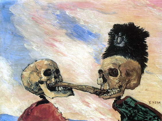 앙소르 <훈제된 청어를 물고 싸우는 해골들>