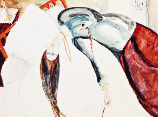 그림 속 칼로 자살하는 여인이 그녀 자신을 가리킨다는 점에서 짐작할 수 있다.