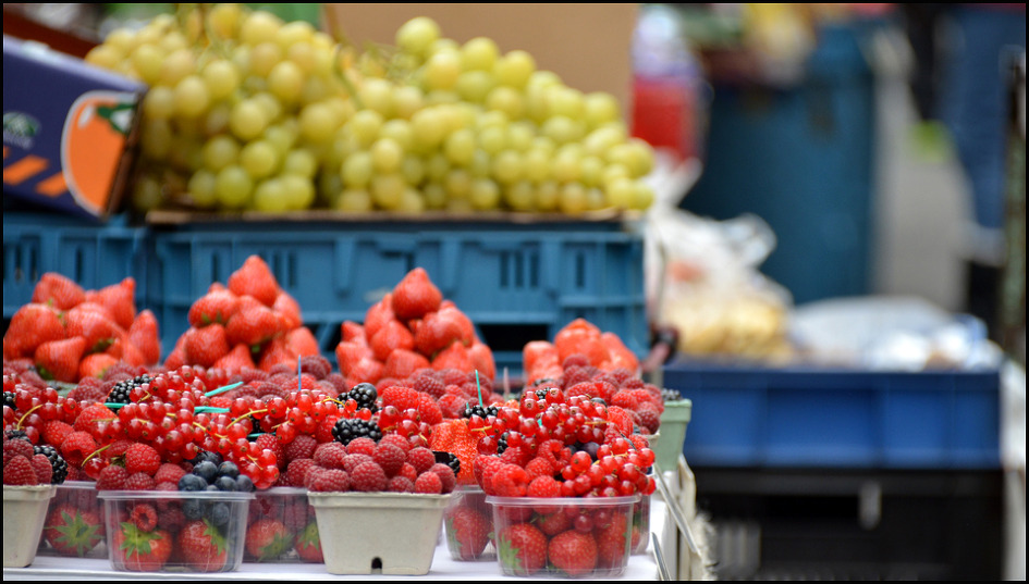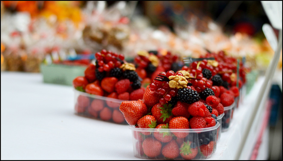 딸기부터 여러가지 과일을 수북하게 쌓아놓은