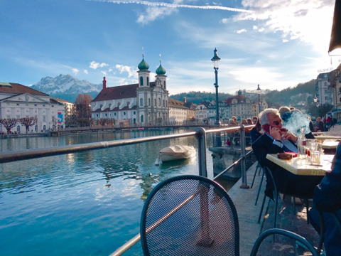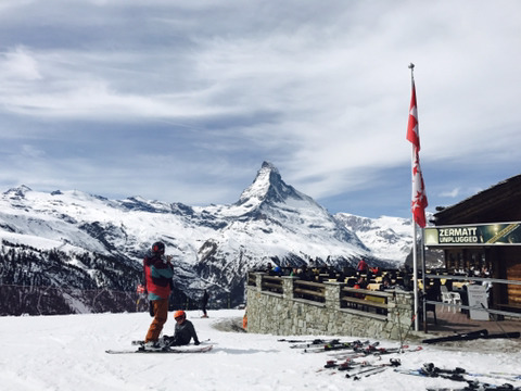버스킹하는 라이브밴드 뒤로 마테호른..황홀경