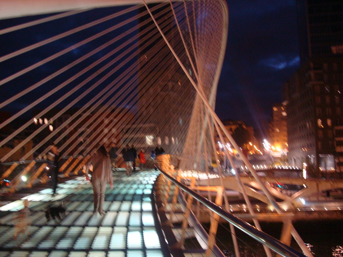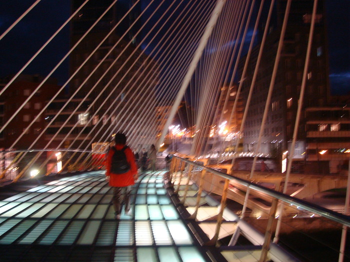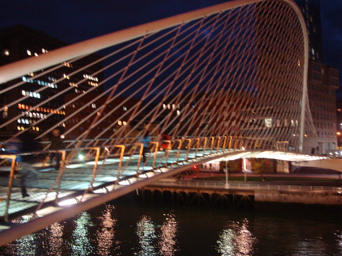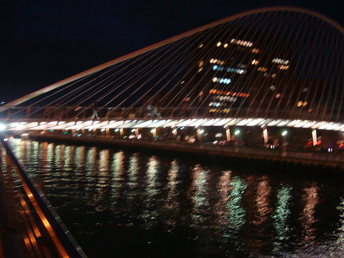 낮에 보았던 그 우아한 백색의 인도교 인 스비스리 다리 Pasarela Zubizuri 가 불빛
