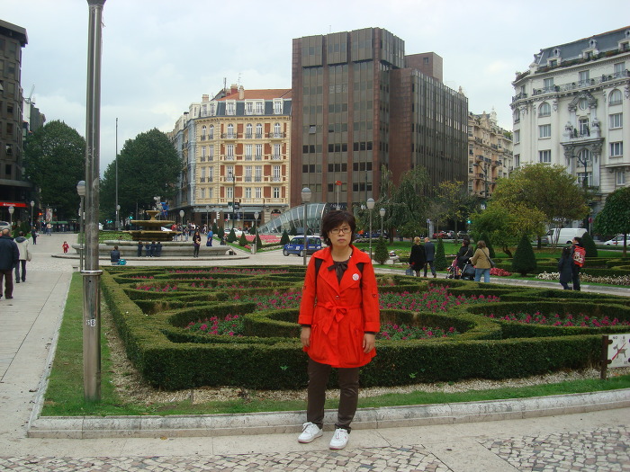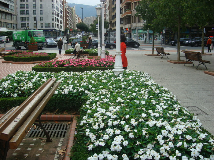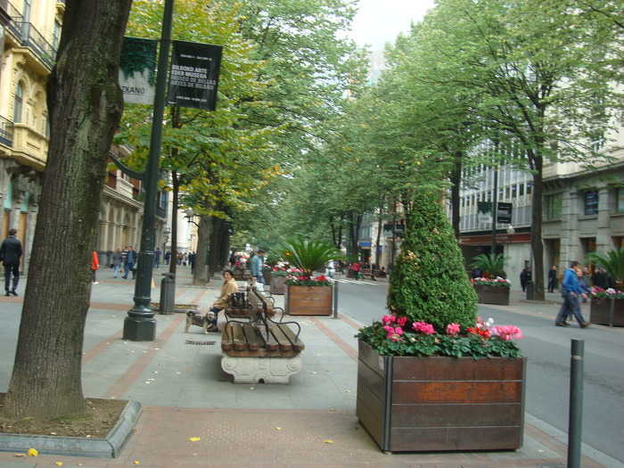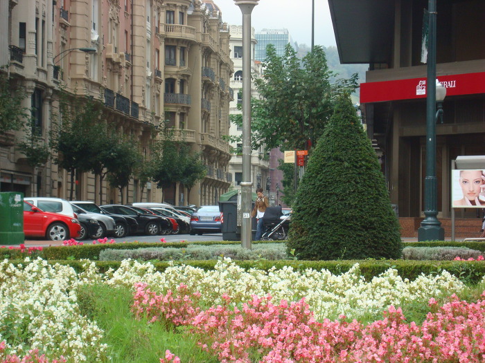 저만치 꽃으로 덮힌 아름다운 Plaza Moyua 광장이 보입니다.