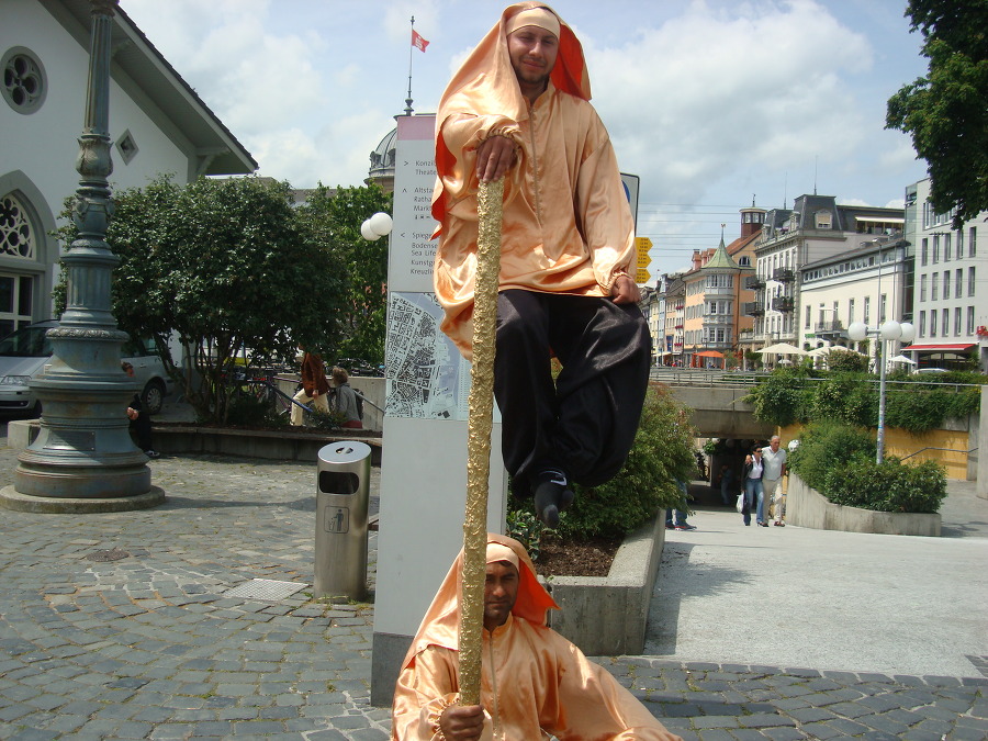 그리고 여기 노란옷을 입은 두 사람 이 보이는데 막대기에 올라탄 것인지!
