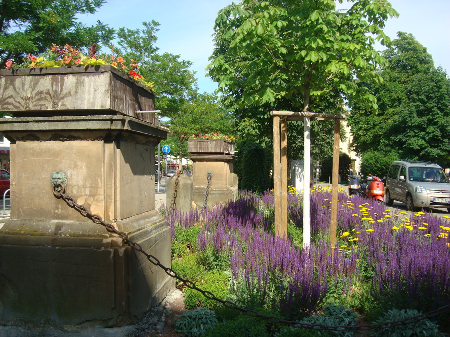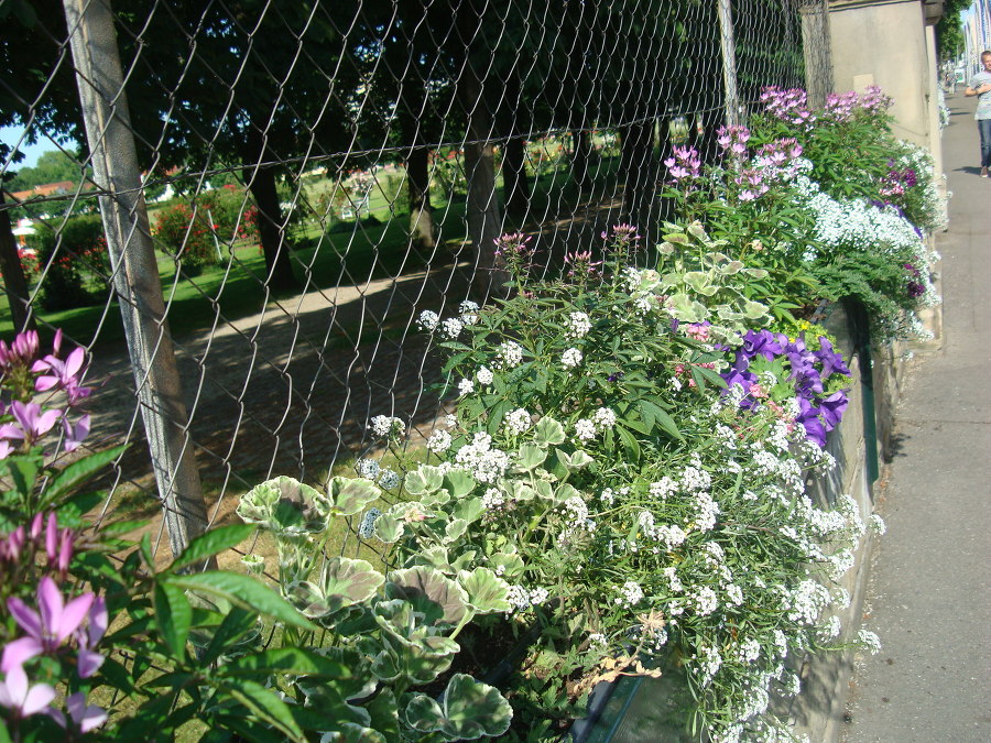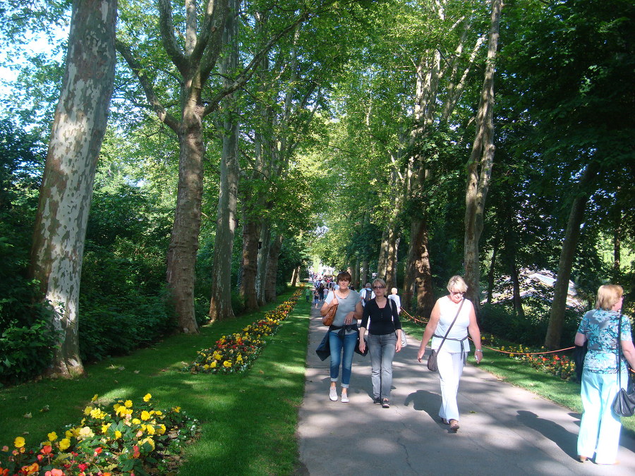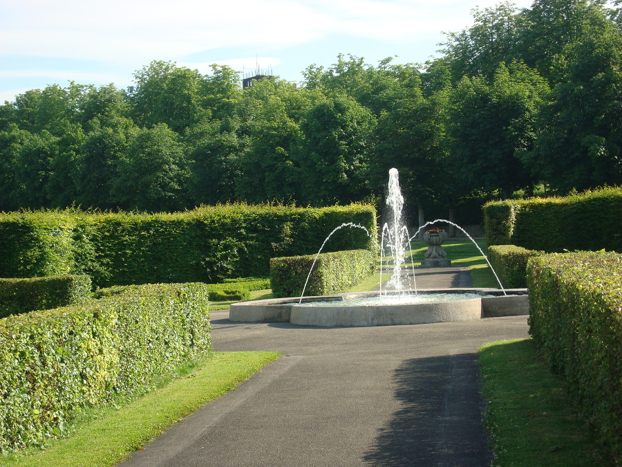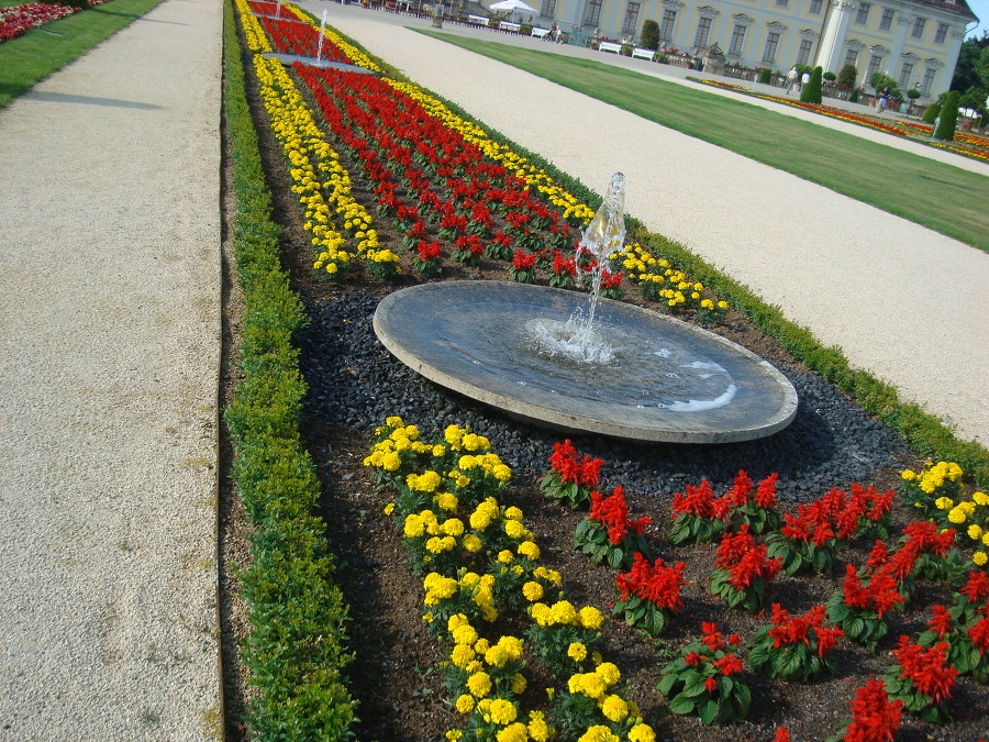 붉고 노란 꽃들이 심어진 화단을 따라가면 거기 중앙에 큰 분수 가 나옵니다.