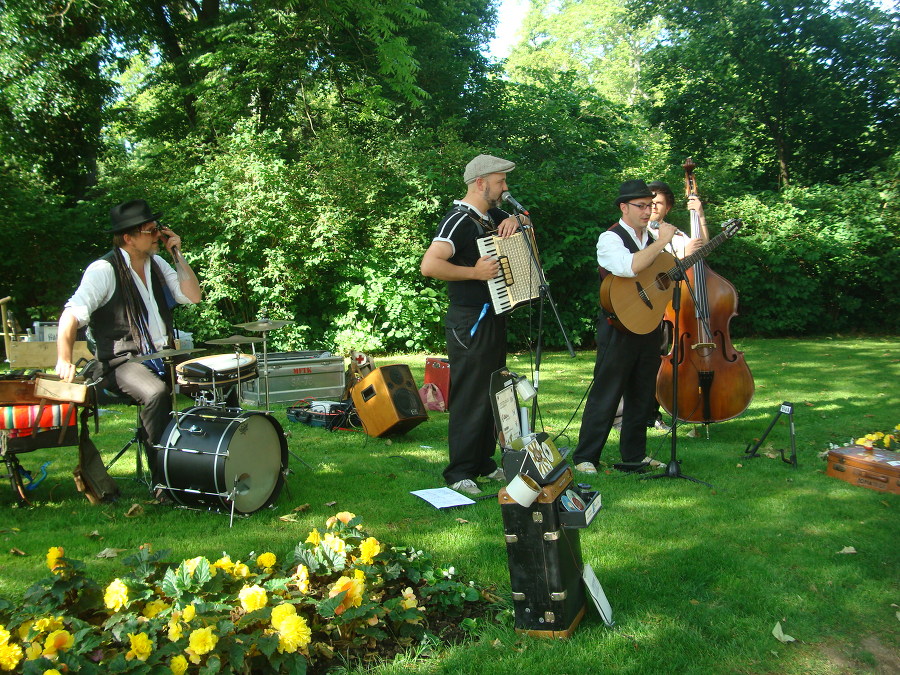 궁전을 나와 마주친 정원에서 악기 를 연주하는 사람들을 보는데 교외에 숲이야