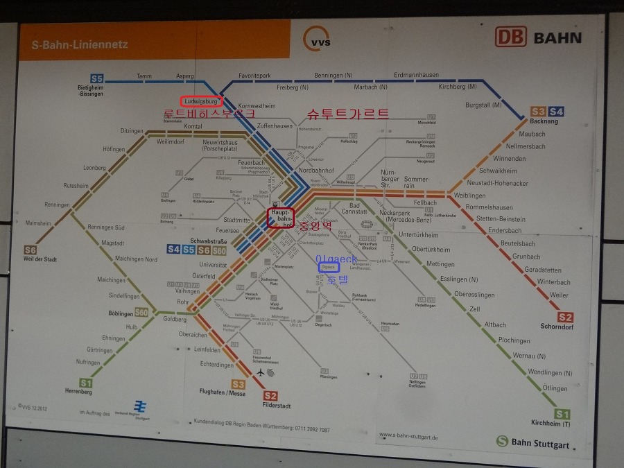 S-Bahn 5번을 타는데 노선도에는 4번도 가능하네요? 기차는 20분을 달려 루트비히스부르크