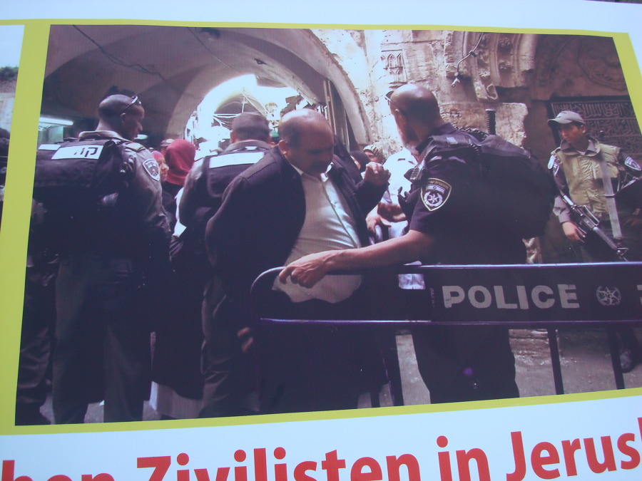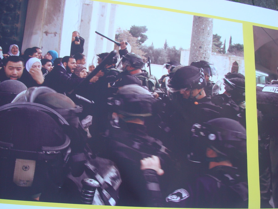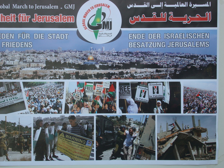 주변에는 사진들이 많이 붙어있는데 보아하니 팔레스타인인들이 데모 를 하면