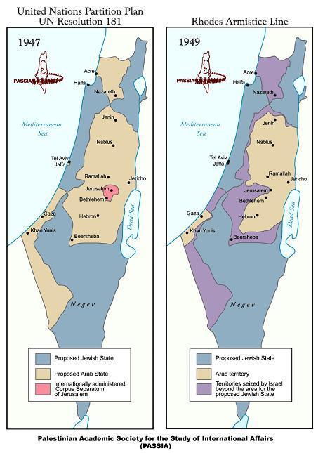 팔레스타인인과 이주해온 유대인의 충돌이 심해지자 1,947년 유엔은 분할안 을 만듭니다.