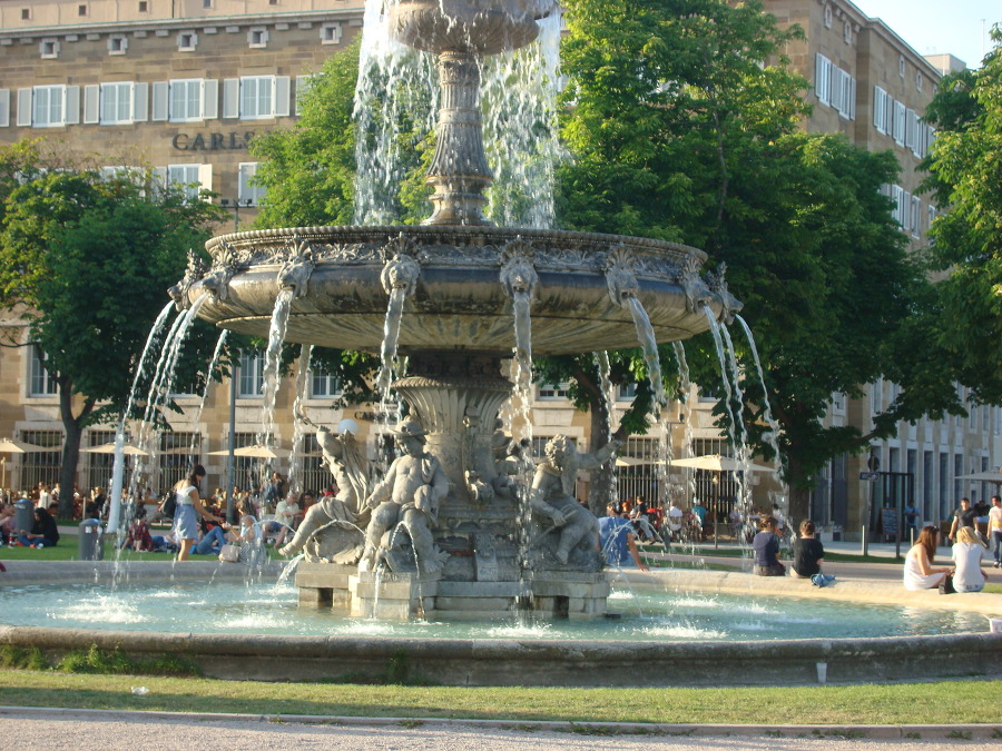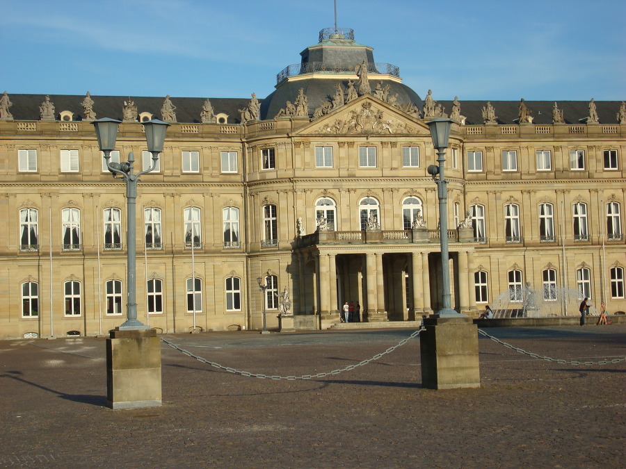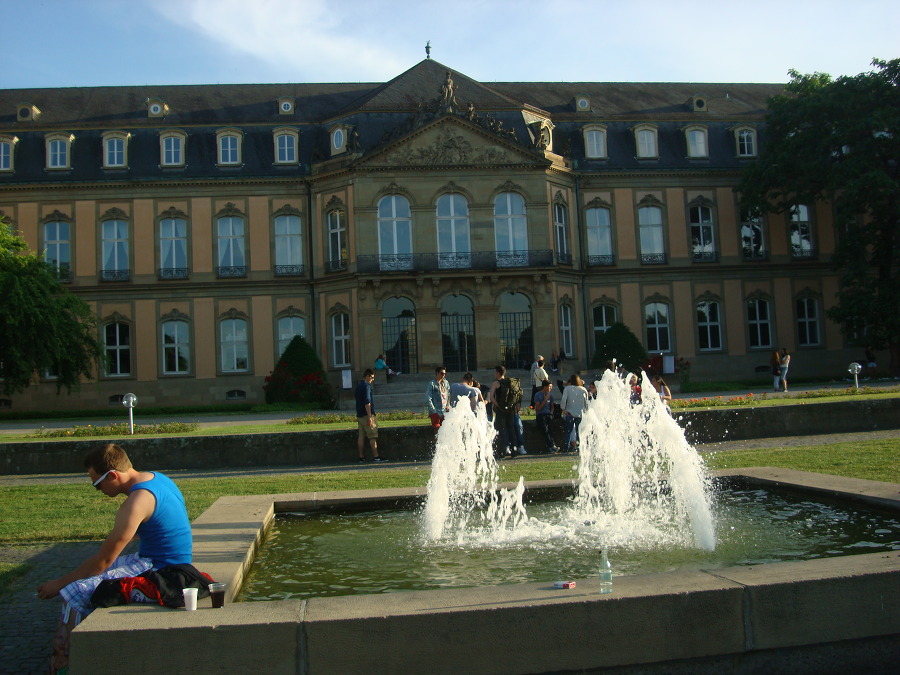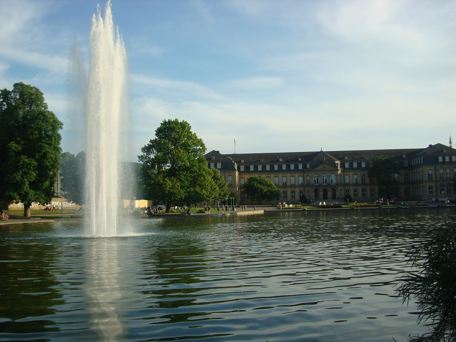 시원하게 물을 뿜고 있고 그 너머로 신궁전 Neues Schloss 이 보입니다.