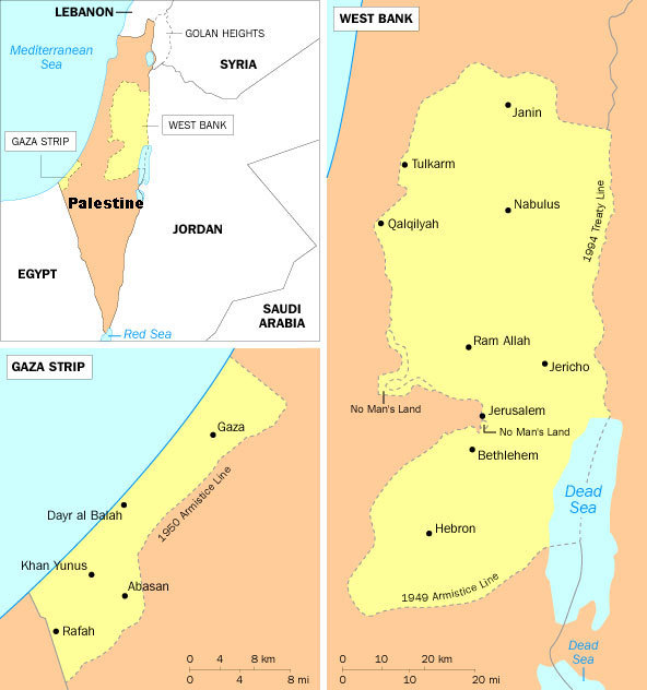 지구 자치권 을 얻었으나 과격파 하마스가 가자를 차지해 이스라엘과 싸우는 것이지요.