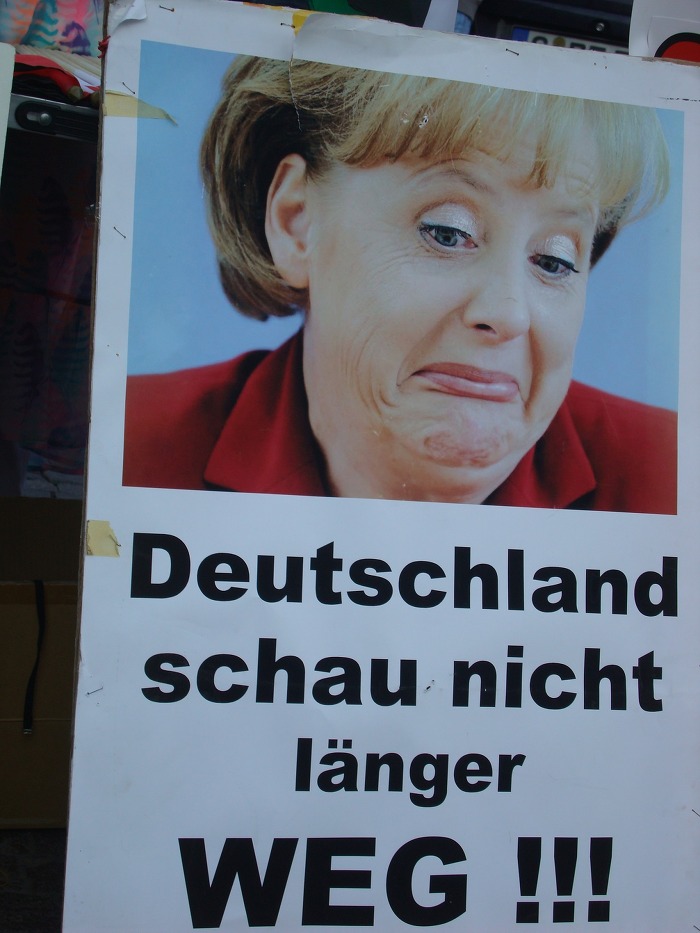 그런데 한쪽에는 독일 수상 메르켈 이 얼굴을 찌푸리고.....