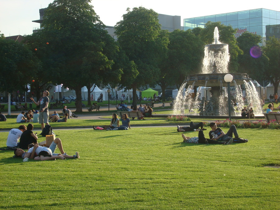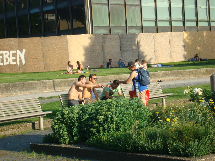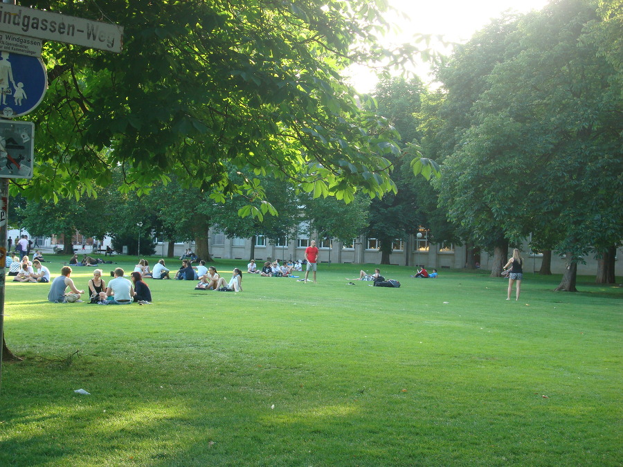 으로 돌아와서는 남쪽의 슐로스 광장 에 있는 잔디 공원에 들어섭니다.