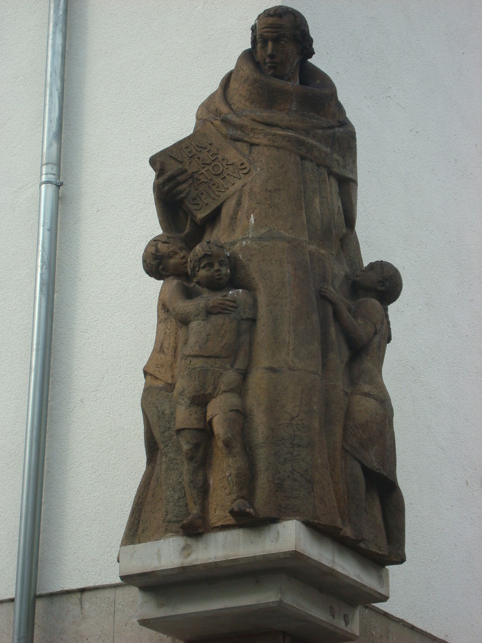 대주교좌를 설치하도록 만든 보니파티우스 상이 서 있습니다.