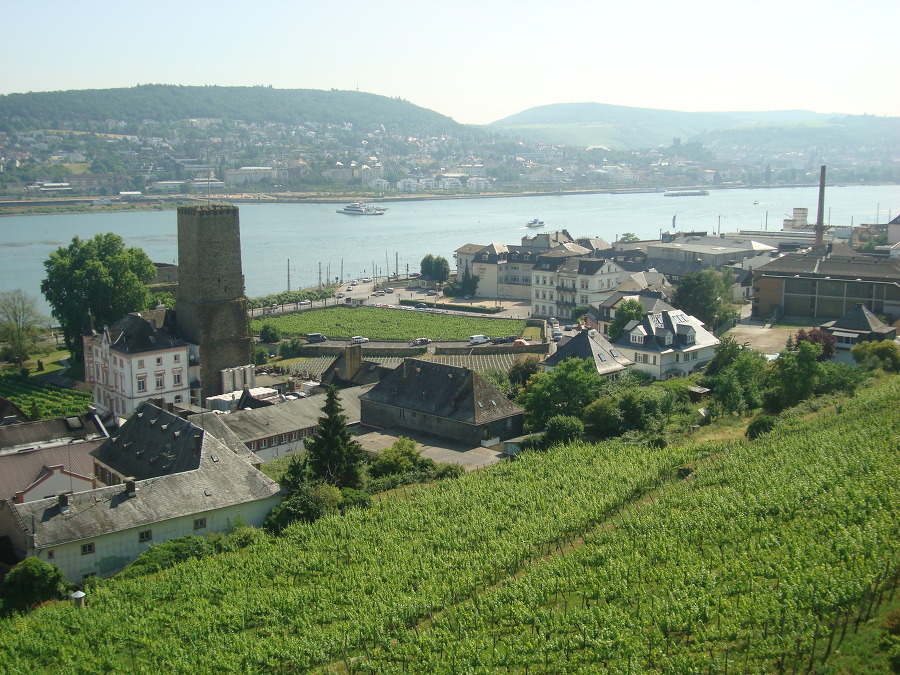 여기 라인강변의 도시 뤼데스하임 은 구릉이 많고 기후가 좋은지